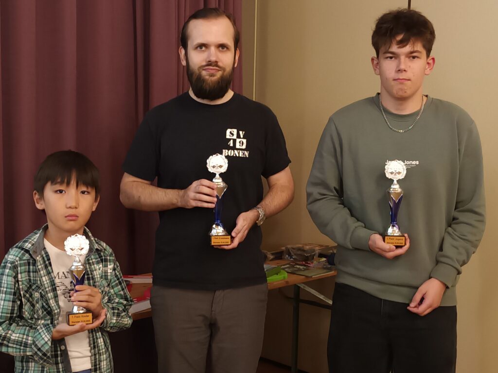 Am Samstag (13.09.2025) fand das traditionelle Benefizturnier in Kooperation mit der Martin-Luther-Gemeinde Bergkamen-Oberaden statt. In zwei Gruppen traten insgesamt 46 Spieler:innen gegeneinander an. Bei den Erwachsenen hat sich Fabian Schlottmann vom SV Bönen durchgesetzt. Die Kinder und Jugendlichen haben gemeinsam eine Gruppe gebildet und hier wurde am Ende geschaut welches Kind und welcher Jugendliche die meisten Punkte geholt hat. Bei den Kindern hat sich Namsrai Sagurkhuu durchgesetzt und bester Jugendlicher wurde Simeon Koschel. Herzlichen Glückwunsch an die Sieger!
